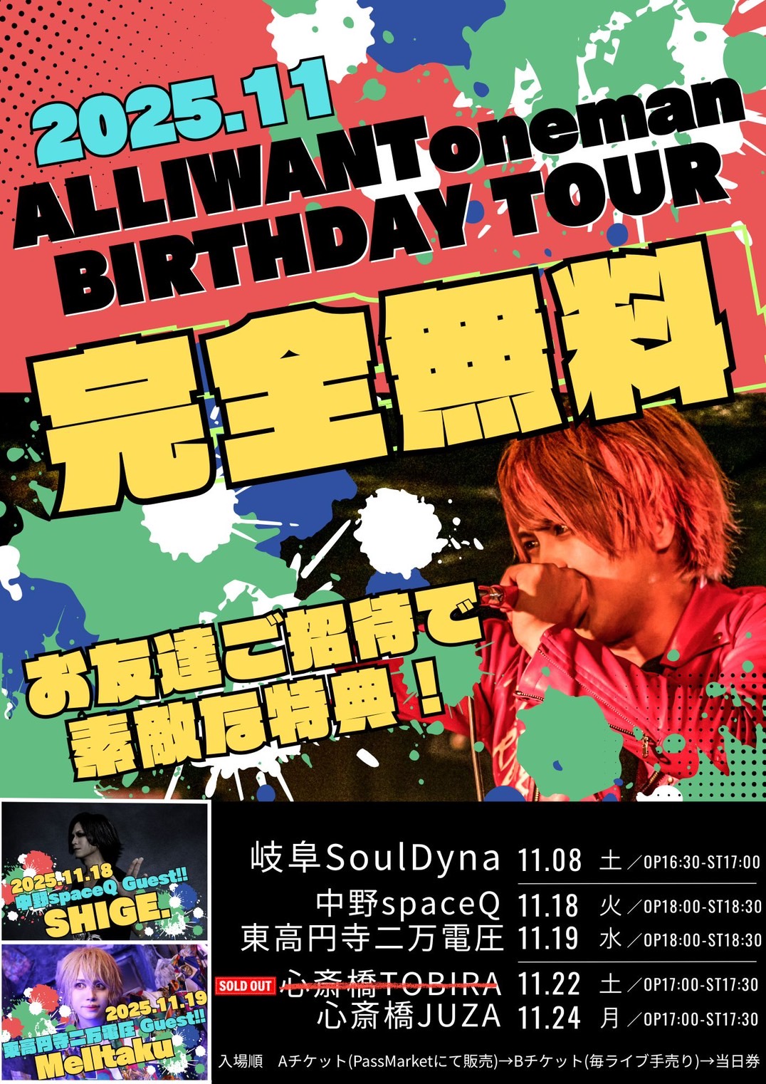 ・トラブルやアーティストの都合により、予告無くイベントが中止になる場合がございます。