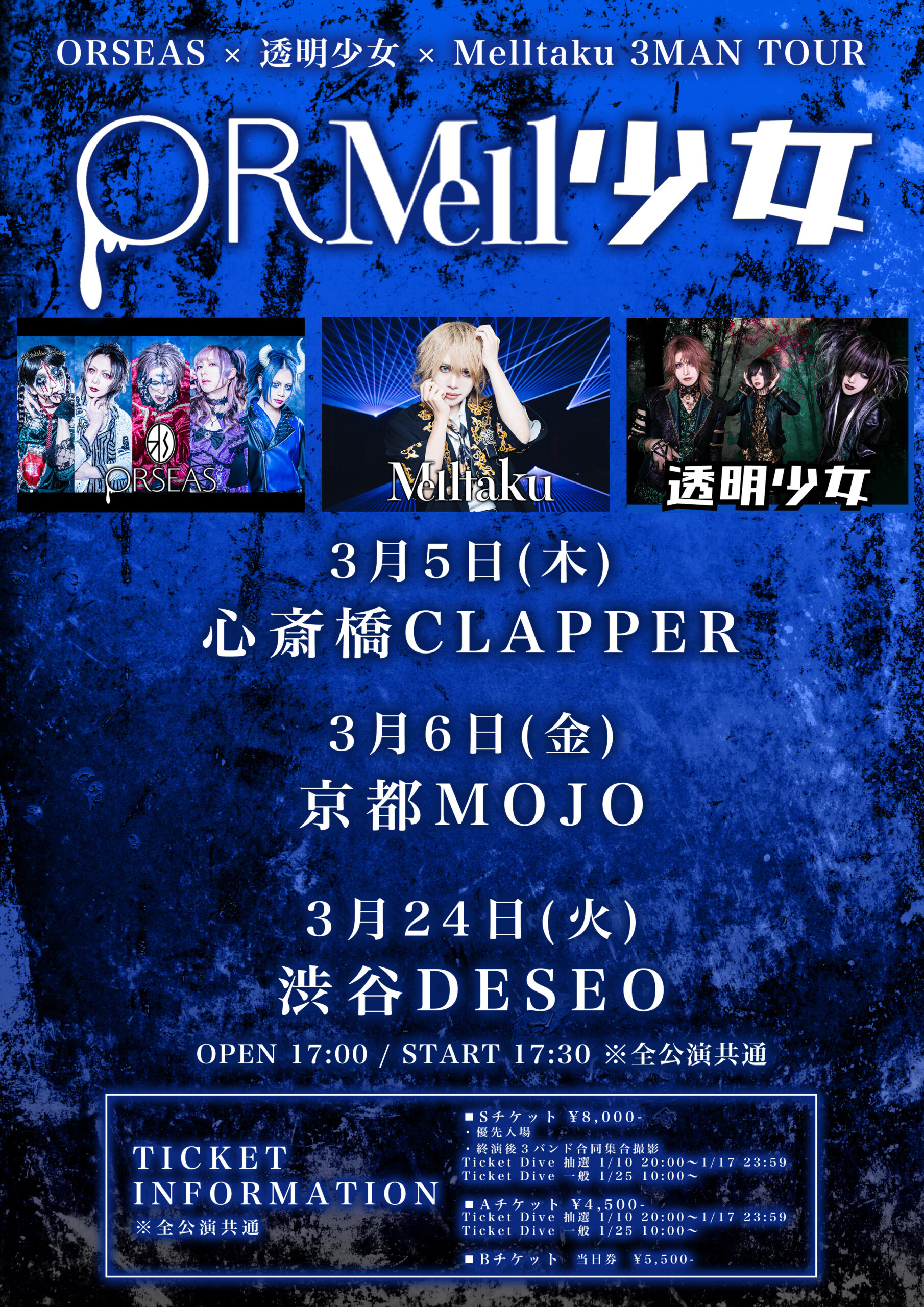Sチケット ¥8,000- ︎Aチケット ¥4,500- ︎Bチケット 当日券 ¥5,500-